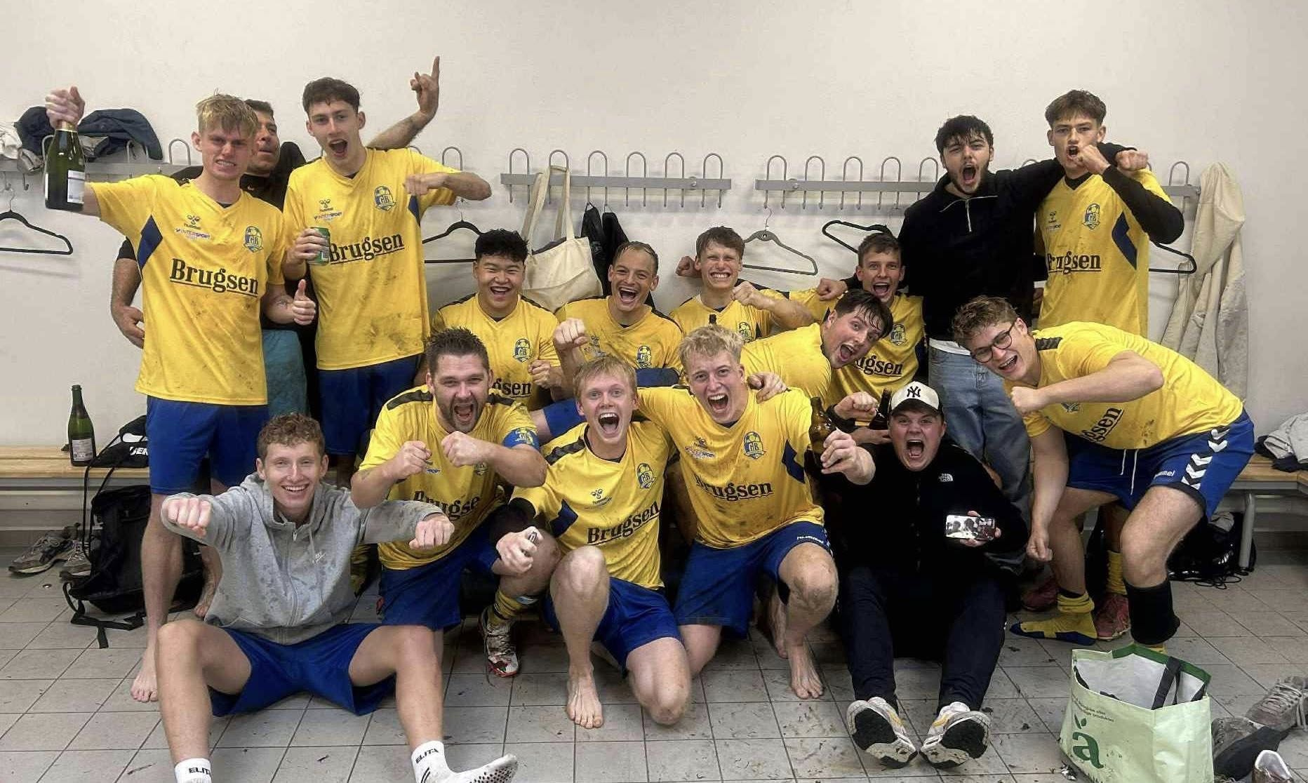 Konfetti og champagnepropperne sprang, hvorefter drengene gjorde klar til den fortsatte fejring i omklædningsrummet og sidenhen i klublokalet.